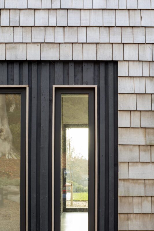 Craft in our work is not nostalgia. It is a form of deep listening – to materials, to people, to place, to climate. It asks us to understand the geometry of a flint, the behaviour of oak in a coastal wind, the way clay plaster will dissolve the boundary between shadow and form, or how a simple timber shingle can echo centuries of vernacular building on the edge of the South Downs, as at Lane End.