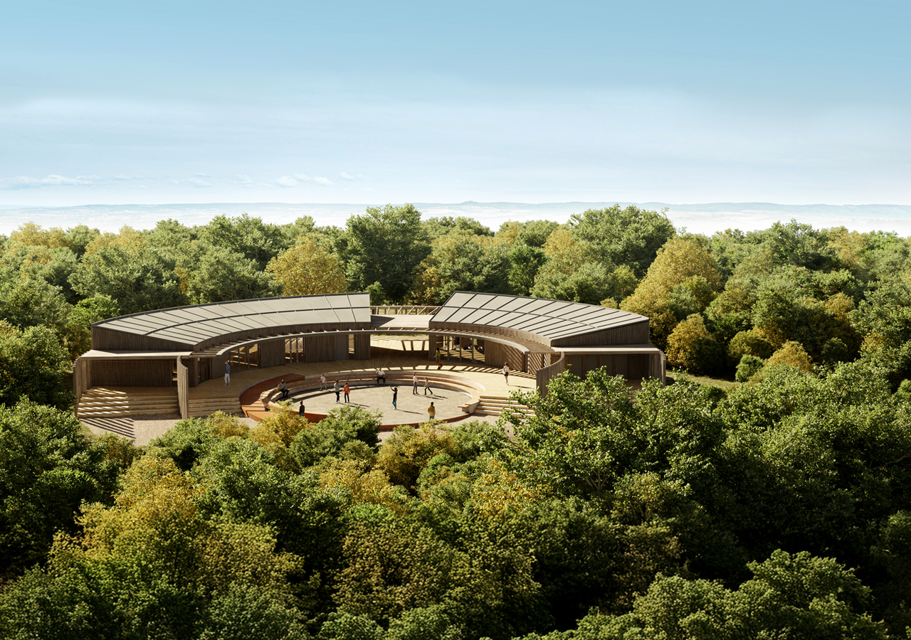 Inspired by the rich Iron Age history of the wider site, the design of the new visitor and learning centre is circular in form. It hovers over the landscape to touch lightly the ancient monument in which it sits. The scheme seeks to celebrate the prominence of the site, reflecting on its heritage and its location to create a new sustainably focused centre which can ensure the future of the park and promote accessibility for all.